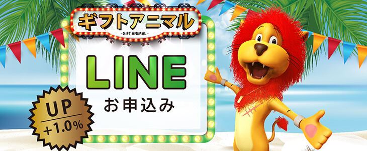 ギフトアニマルのLINE公式アカウントで「友だち追加」していただきトーク内のメニューにある「お申し込み」で買取率『1.0%』アップ致します。